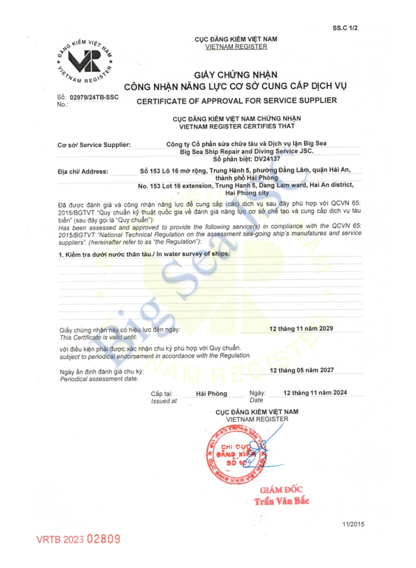 Vietnam Register (Vietnam Register - VR) is an organization directly under the Ministry of Transport, performing the function of state management of registration for vehicles and vehicles, loading and unloading and construction equipment. specialized containers, boilers and pressure vessels used in road, rail, inland waterway and maritime transport nationwide; Organize and carry out the registration of technical safety quality of vehicles, transportation equipment and vehicles and equipment for exploration, exploitation and transportation of oil and gas at sea according to the provisions of law.