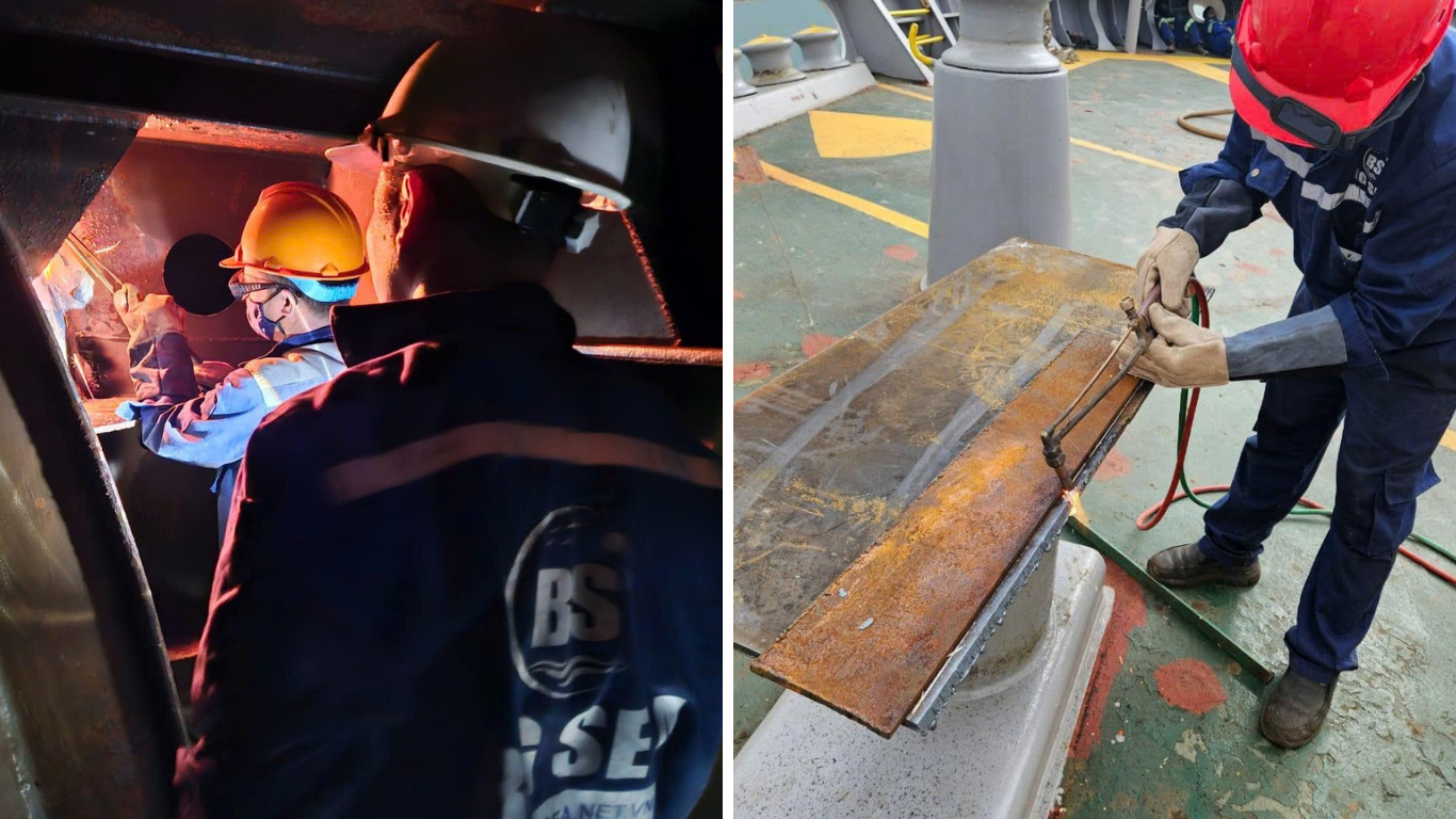 After the initial assessment, specialized machinery such as cutting tools, welding machines, lifting devices, and protective gear were fully prepared. Certified steel plates were also transported onboard. Every step followed strict safety protocols to ensure smooth and secure operations.