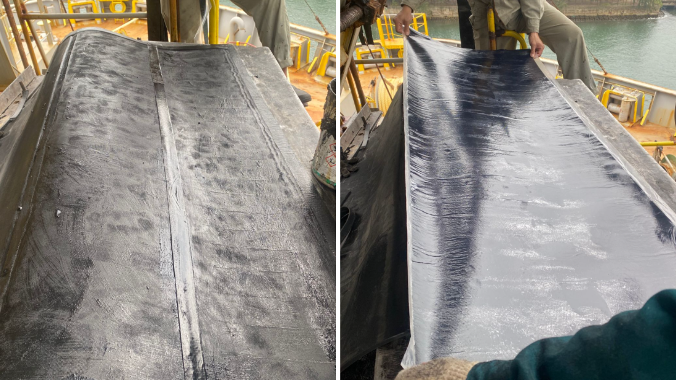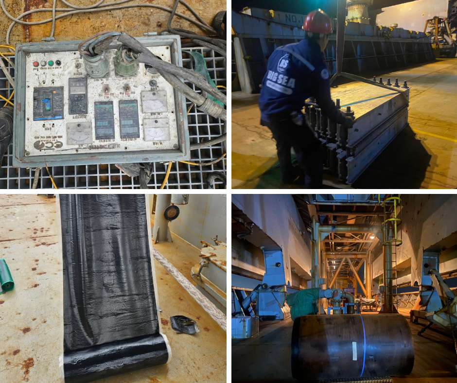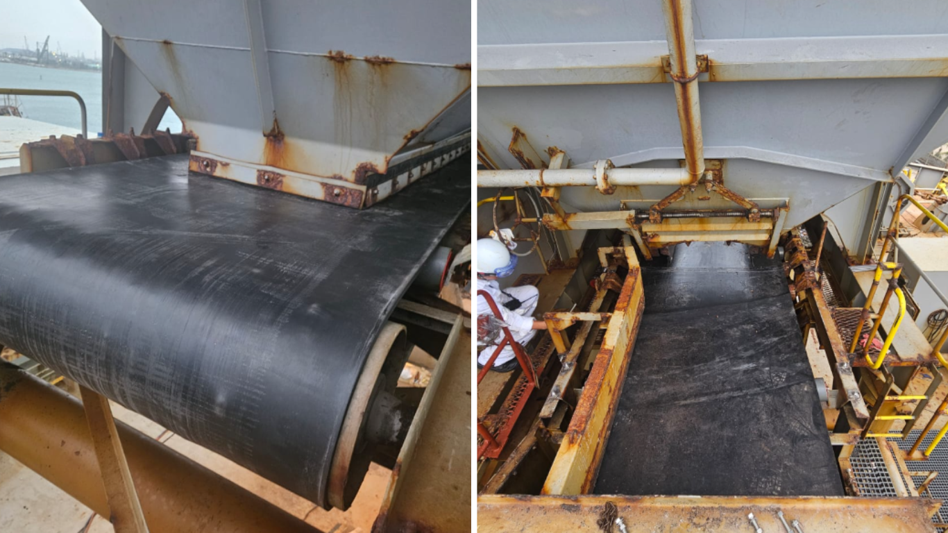 As ship owner's request, BIG SEA JSC arranged technicians, equipments and materials come on board to replace new conveyor belts.